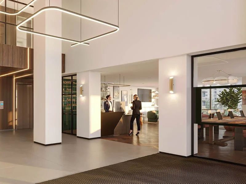 At the heart of the transformed ground floor lies a double-height reception, bathed in natural light to create an energising and welcoming atmosphere upon entry.